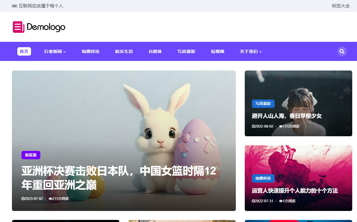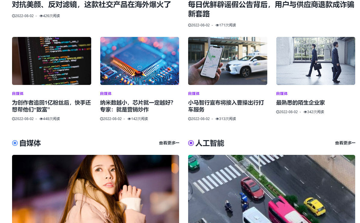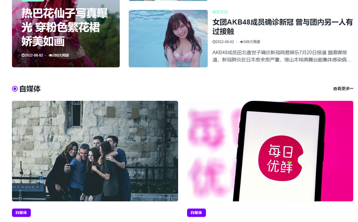 帝国cms7.5内核开发的响应式自媒体博客模板图文展示类模板,该模板适合新闻图文自媒体、博客、资讯文章等,其他行业也可以做,只需要把文字图片换成其他行业的即可;